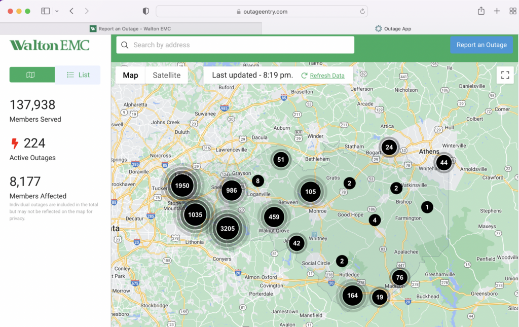 Turbulent weather has caused significant interruptions across our 10-county service territory. There are currently 8,177 members affected (7,000 in Gwinnett County). Our lineman will work to restore service as safely and quickly as possible.