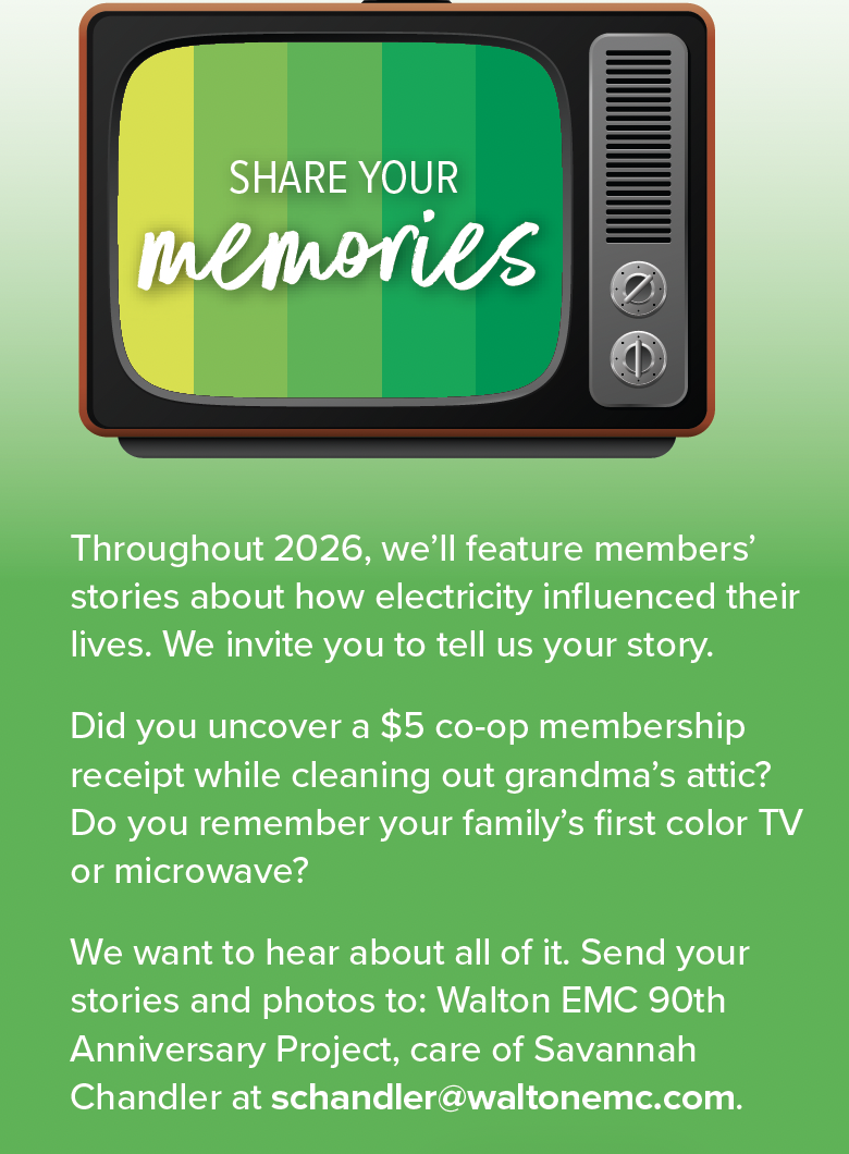 To celebrate the co-op’s 90-year legacy of service, we’ll spotlight stories that look at both where we’ve come from and where we’re headed. The future remains bright for electricity and its power to move us forward.